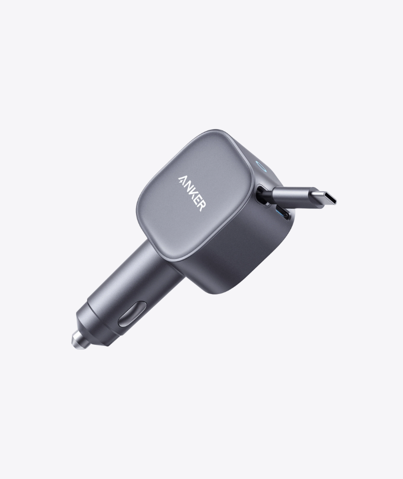 | 2-in-1 Clutter-Free Car Charger | Compact dual-port car charger with integrated cable management, featuring USB-A and Type-C fast charging, smart safety protection, and a sleek clutter-free design for a tidy driving experience. |