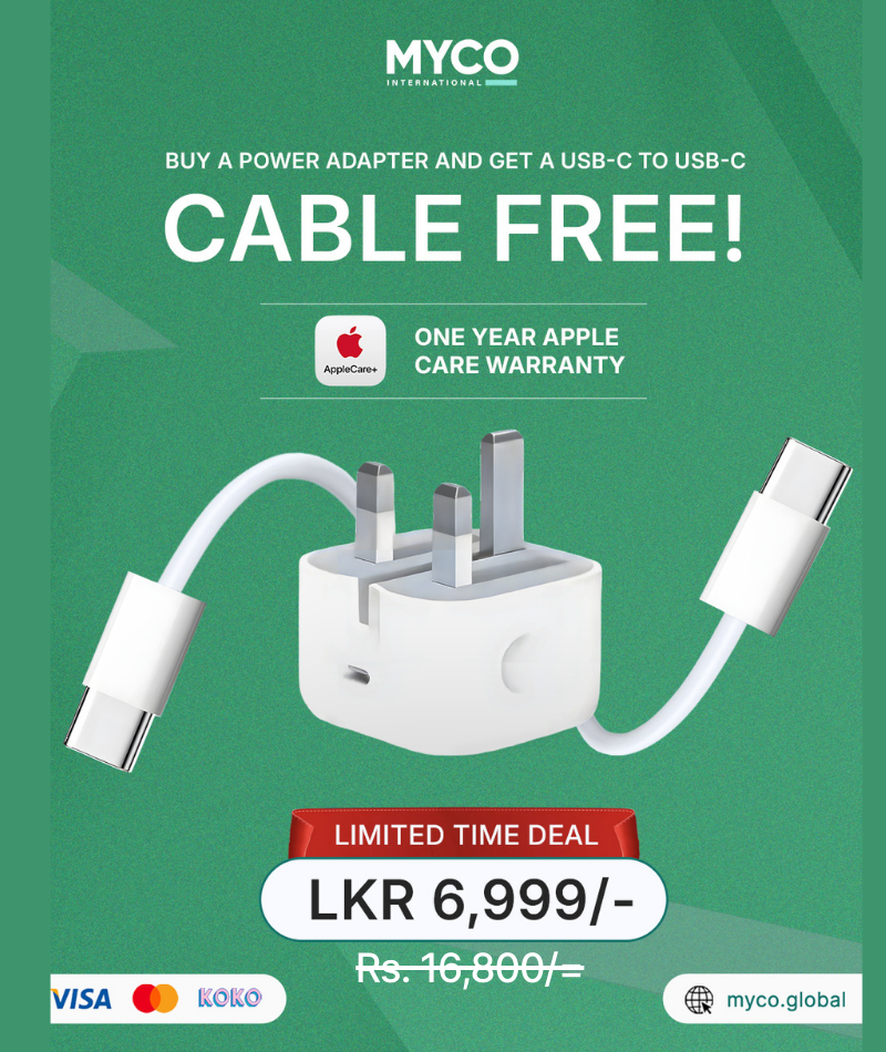 Get an original Apple 20W USB-C Power Adapter and enjoy a FREE high-quality cable — perfect for your Apple or USB-C devices.